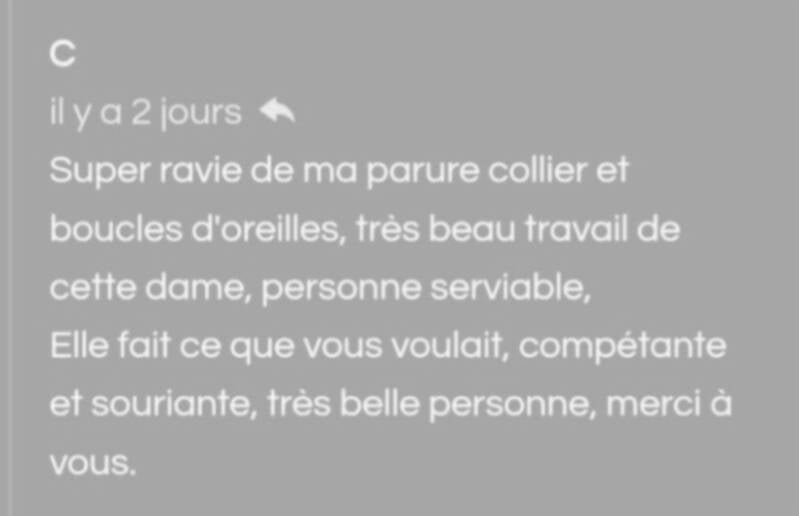 “Je suis absolument ravie de mon achat chez Onlydream ! Le bijou en acier et résine que j'ai choisi est encore plus beau en réalité. Un service client impeccable et une livraison rapide. Je recommande vivement !”
