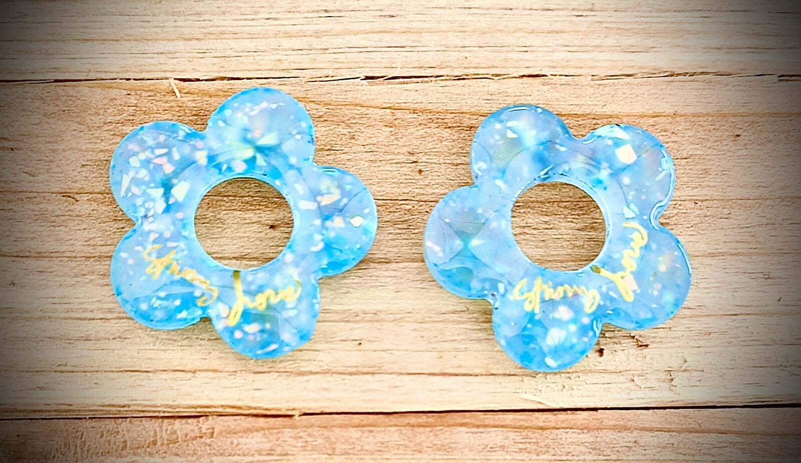 Pampilles en forme de fleur avec paillettes bleues .les créoles qui vont avec son offertes