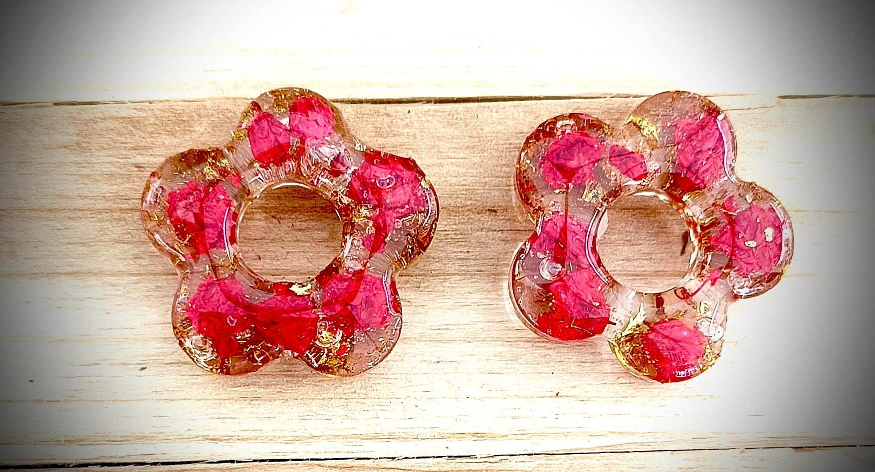 Pampilles en forme de fleur avec gypsophile rouge et feuilles d'or.