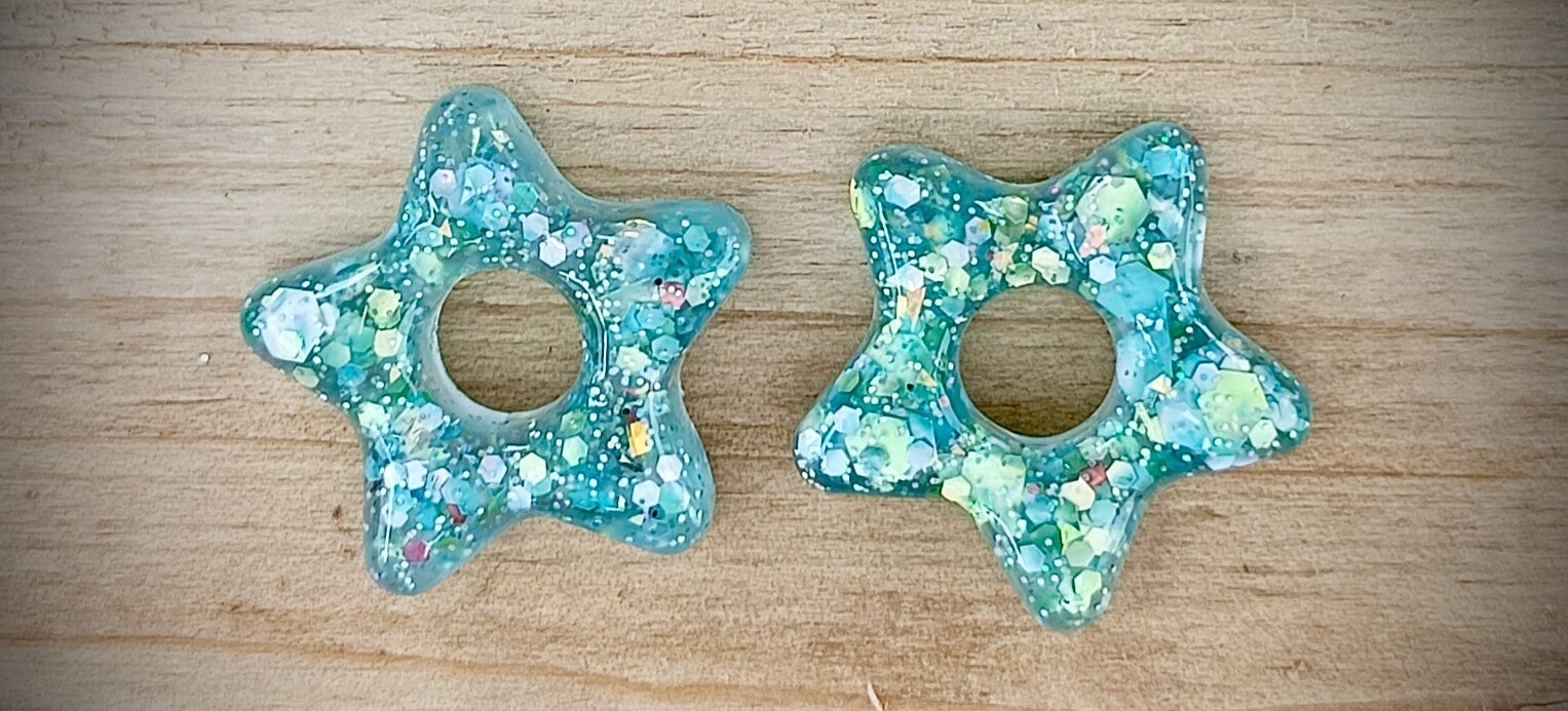 Pampilles en forme d'étoile avec paillettes bleues turquoise .