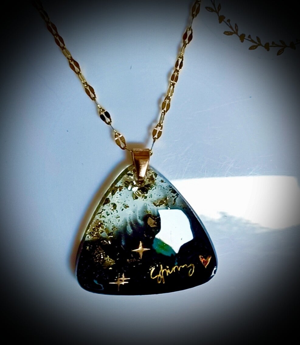 Pendentif en résine avec transparence noire.
