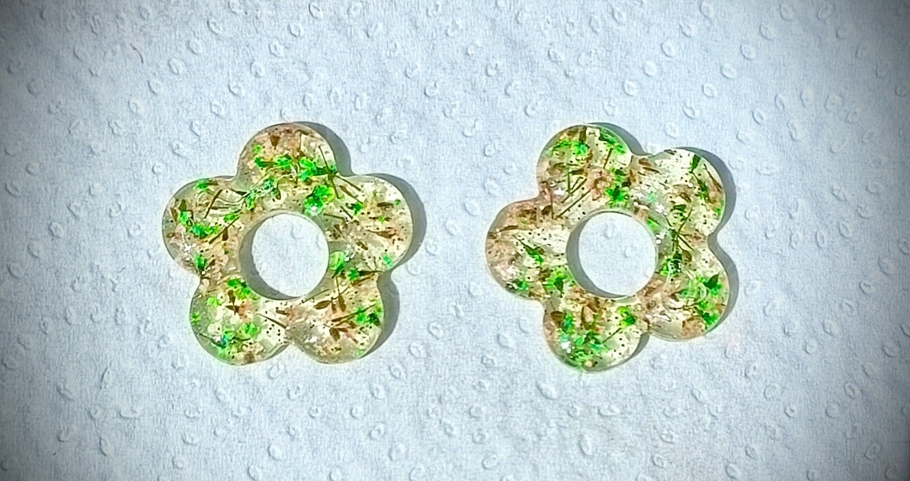 Pampilles fleurs 2,5cm mini fleurs roses et vertes.