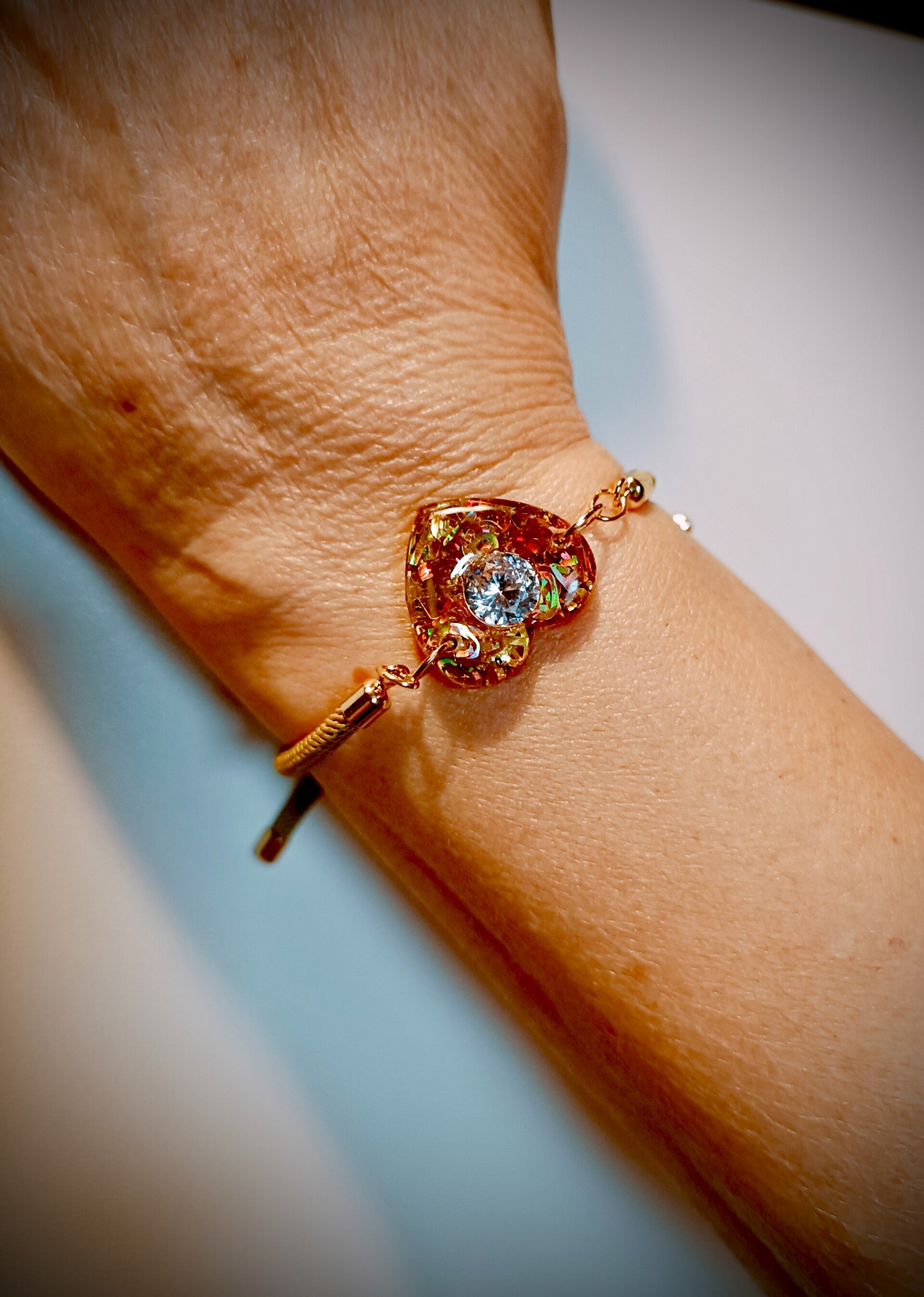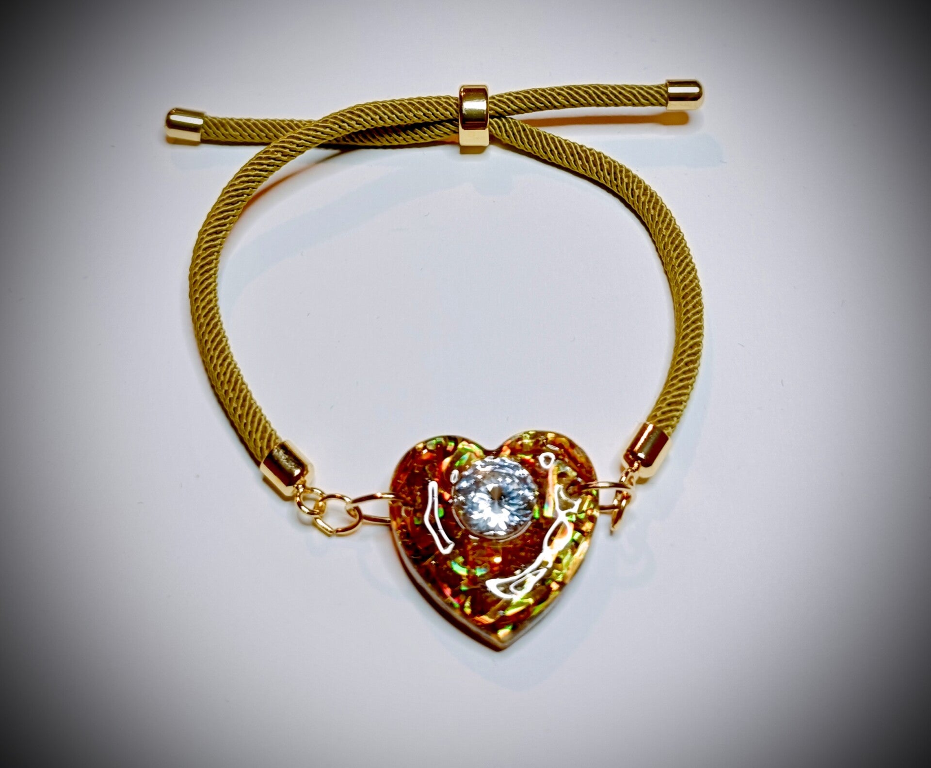 Bracelet en résine en forme de coeur avec un gros strass cristal au milieu.longueur 17 cm .