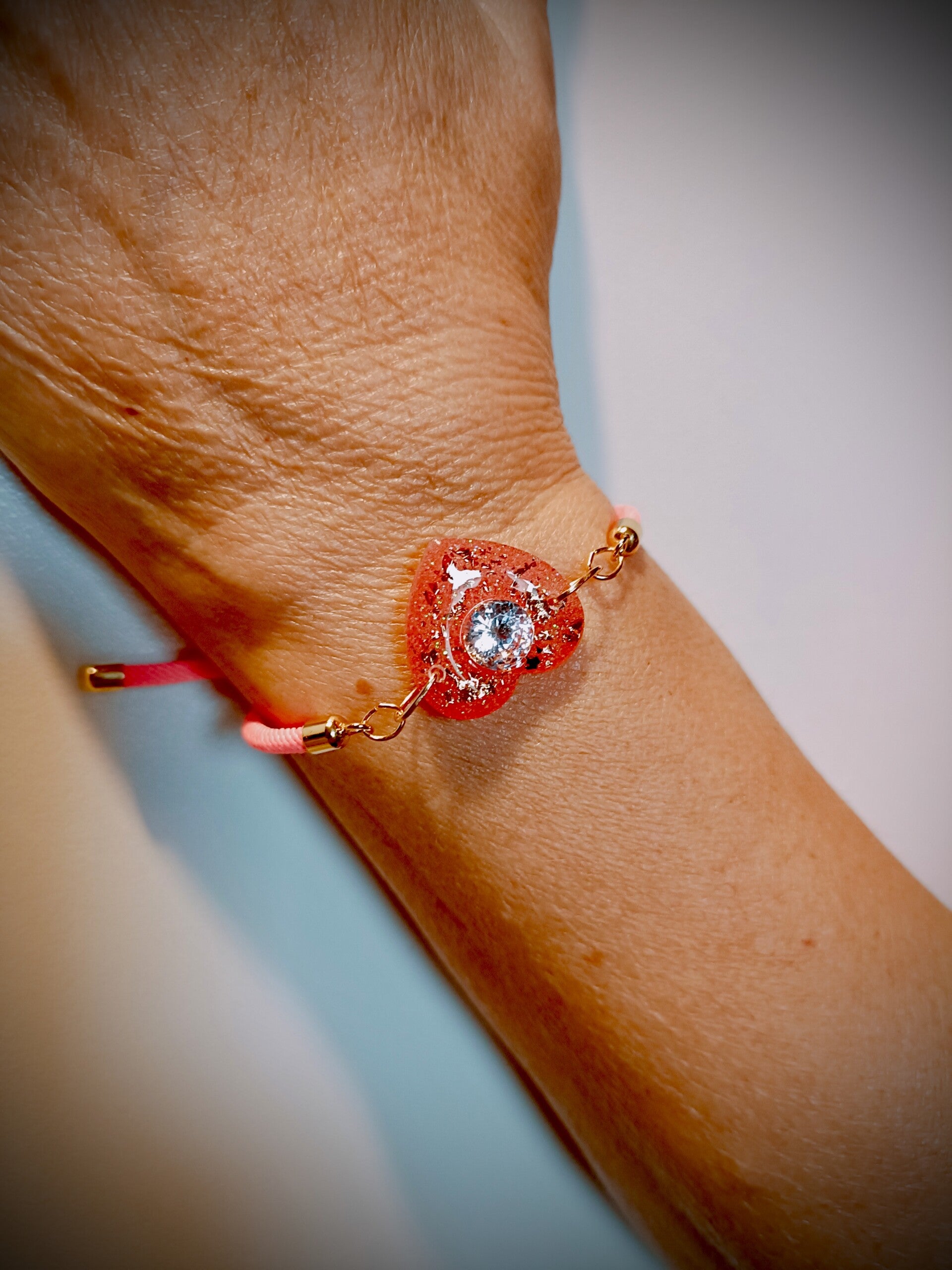 Bracelet en résine en forme de coeur avec un gros strass cristal au milieu.longueur 17 cm .