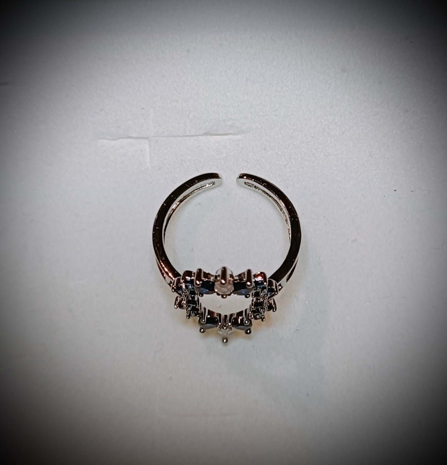 Bague en acier inoxydable ajustable originale strass cristal blanc et bleu.